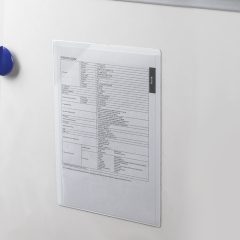 По периметру конверта располагается цветная магнитная полоска, обеспечивающая надежную фиксацию документа на любой металлосодержащей поверхности.